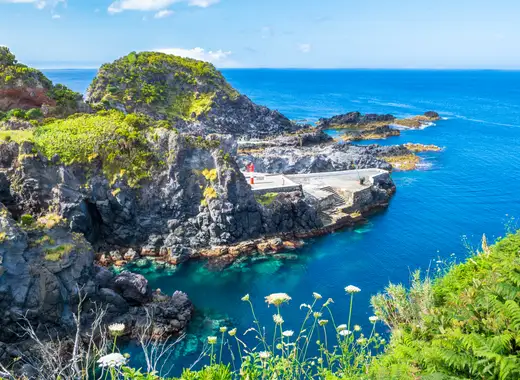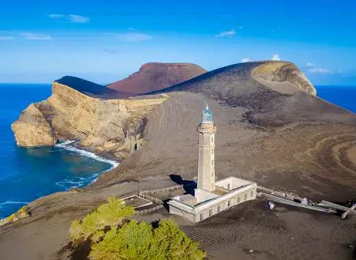 Ilha do Faial: Explore a "cidade-mar" da Horta, deslumbre-se com a vista panorâmica do Miradouro de Nossa Senhora da Conceição, a Caldeira e o imponente Vulcão dos Capelinhos, um cenário quase lunar que marca a história geológica da ilha.