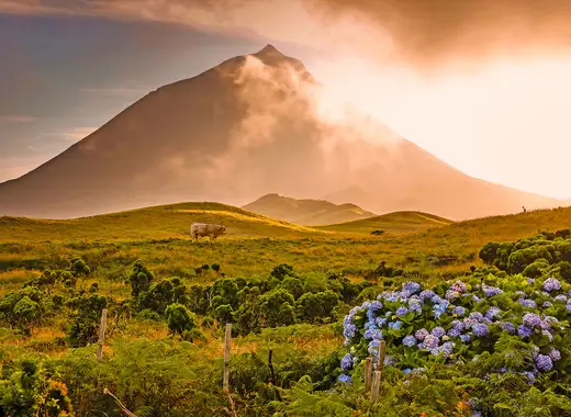 Paisagens de Contrastes: Percorra as estradas ladeadas pelas icónicas hortênsias azuis que dividem as pastagens, visite piscinas naturais (como as do Varadouro) e mergulhe na calma das encostas verdes.