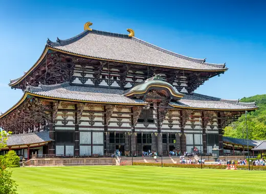 Quioto e Nara: Visite a antiga capital imperial e o Templo Todai-ji com a sua imagem colossal de Buda, rodeado pelos famosos veados sagrados no parque da cidade.
