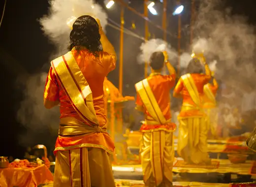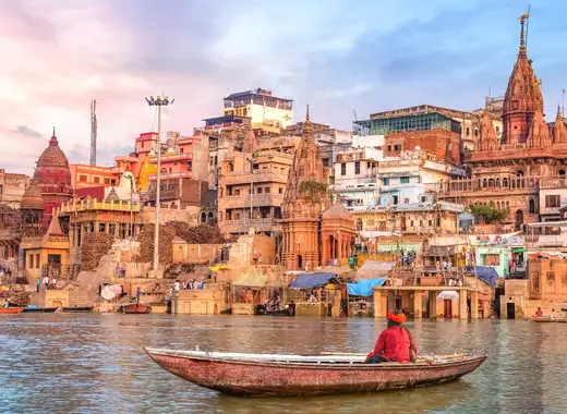 Varanasi: Sinta a energia espiritual do Rio Ganges com um passeio de barco ao amanhecer e assista à mística cerimónia do Ganga Aarti.