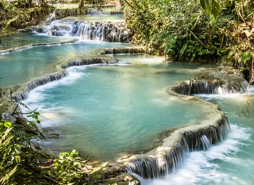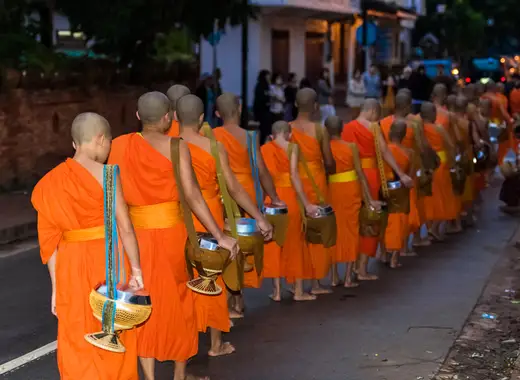 Luang Prabang (Laos): Testemunhe o espiritual ritual matinal dos monges e maravilhe-se com as cascatas de Kuang Si e as grutas sagradas de Pak Ou.