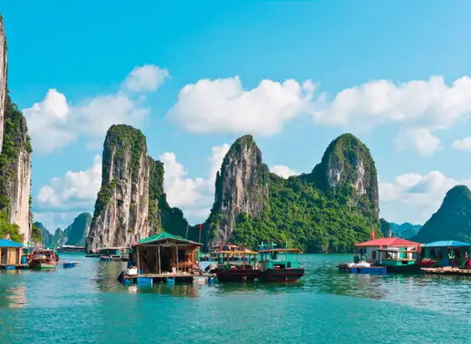 Baía de Halong: Pernoite a bordo de um cruzeiro tradicional e acorde rodeado por milhares de ilhas de calcário e grutas escondidas.